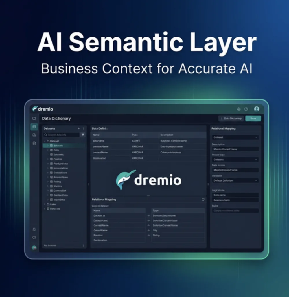 Without context, AI models hallucinate. Dremio’s AI Semantic Layer teaches the AI your business language so it generates the right SQL, not generic SQL.